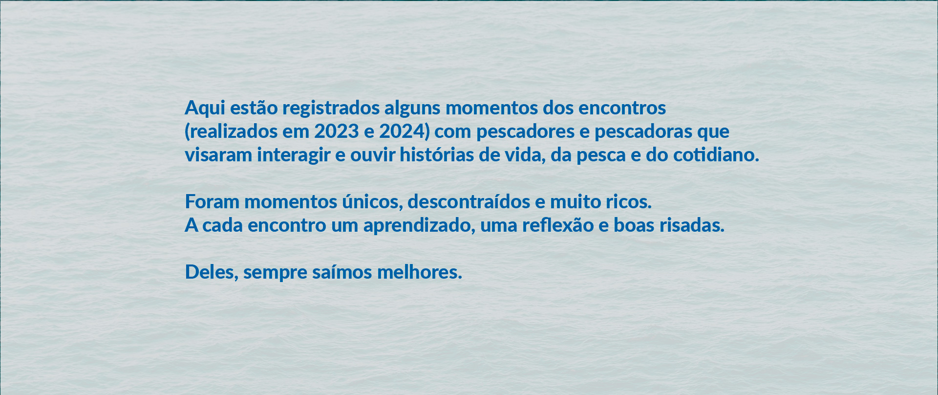 A saudade de ir para o mar permeou todo o nosso encontro, quem é pescador não pode viver longe da água!